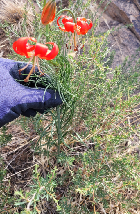 Our first vegetation sampling team after the trial run consisted of just five people; Dr. Mandakh, Pugee (a botany student from the National University of Mongolia), Ming (an EarthWatch volunteer), Remo (an Ikh Nart park ranger staffed by The Living Desert), and me (a gardens supervisor here at The Living Desert). On our first day of sampling, we surveyed 13 sites in a relatively close 12-kilometer loop around the camp which only took us 10 hours. This was the most exciting day for me as we were exposed to new material all day. I also saw two of the plants that were on my must-see list and a bonus lily (Lilium pumilum) at our last site for the day.