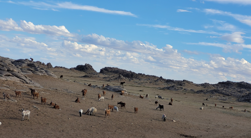 Something worth noting is that Ikh Nart is still inhabited by nomadic herders. We saw many yurts and livestock herds around the reserve that belong to families whose ancestors have been living nomadically for thousands of years. Vegetation conservation efforts in Ikh Nart are sensitive to this long history and are aimed at engaging the local community in a way that is beneficial for their livelihood and for wildlife. There is still a lot of work to do in the conservation aspects of this study and in the very important community engagement efforts at Ikh Nart.