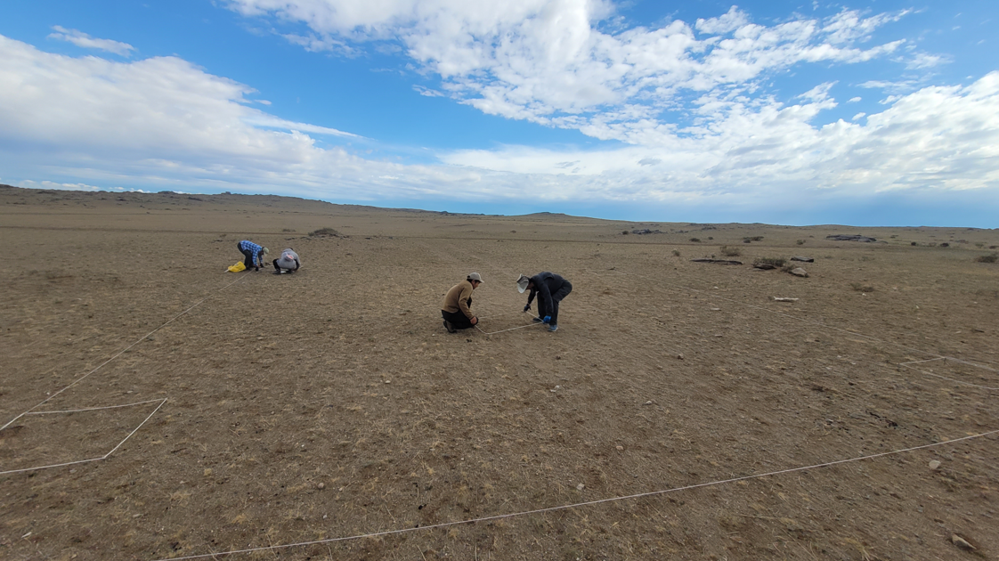 To this end, every year we survey 250 1M2 plots twice a year to measure species richness, density, cover percentage, dry weight, and grazing. This study seeks to answer questions about how grazing patterns and the changing climate affect the ecosystems of the reserve and identify important grazing and forage locations for wildlife and livestock. The individual 1M2 plots are grouped into larger 10M2 five-plot sites which are scattered throughout the reserve into the various ecosystem types that make the reserve so diverse and abundant. There are thirty-two of these ecosystem types in Ikh Nart which are based on the plant communities within them.